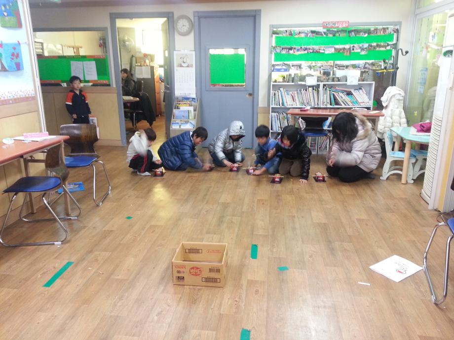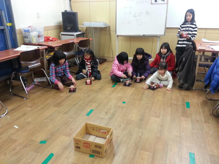 투석기만들어 게임도 하고 과자도 먹고~