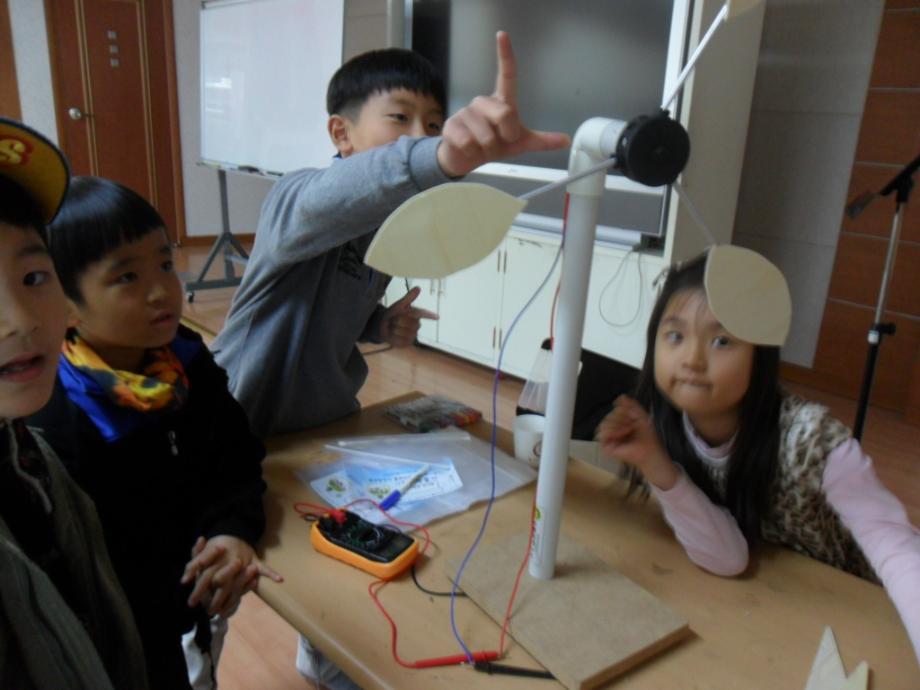 만들어 풍력 발전기에 연결해 작동시켜 발전량을 알아보았어요